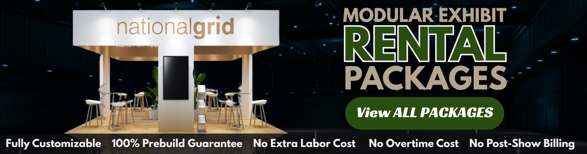 - Turnkey and rental packages: Are you looking for complete booth packages or temporary booths? We offer exhibit rentals and full show-ready graphics, allowing you to focus on your message.