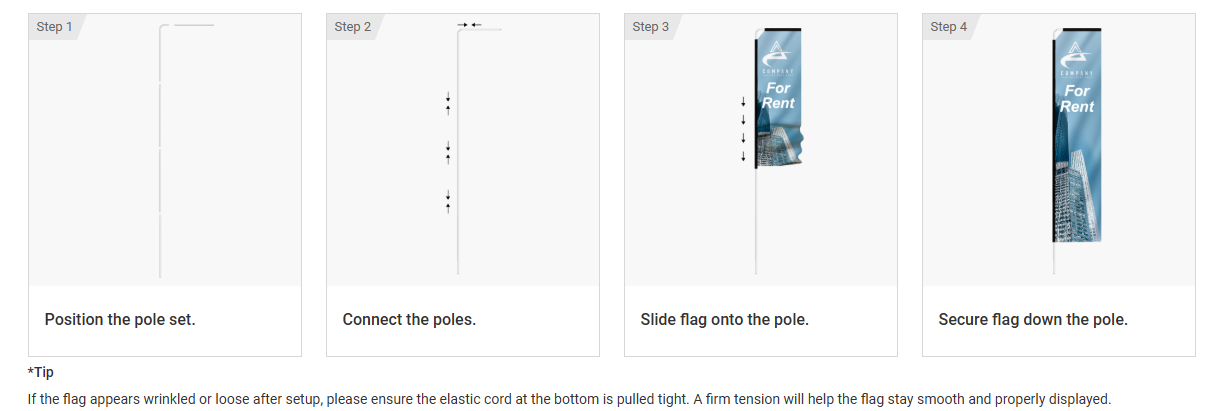- Single sided Print Thru Reverse flag graphic with black nylon pole sleeve to the right of the print when viewed from the front
